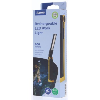 Hama W500-C, pracovní LED světlo, nabíjecí, IP44, magnetické, vyklápěcí hák, 6 režimů
