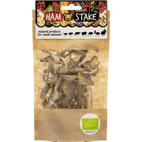 Bezobilný, 100 % přírodní pamlsek pro hlodavé drobné savce. Popis Čipsy Ham-Stake ze sušených hlíz topinamburu jsou chutným a křupavým pamlskem a ideální zdravou svačinkou pro králíky, morčata, osmáky, činčily, křečky, potkany, myši a pískomily. Mírně nasládlé chuti topinamburových hlíz neodolá snad žádný hlodavý savec. Čipsy jsou navíc vhodným zdrojem vlákniny, mají nízkou kalorickou hodnotu a obsahují množství přirozeně se vyskytujících vitamínů, minerálů a dalších zdraví prospěšných látek. Upravují zažívání, čistí organizmus a posilují imunitu. Uzavíratelný sáček zaručí, že pamlsky vydrží vašemu malému kamarádovi dlouho čerstvé. Přednosti pamlsků Ham-Stake: