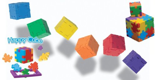 Věkově ohraničená obtížnost je pouze orientační, s kostkami určenými pro děti zažijí zábavu i dospělí. S tímto geniálním a zároveň jednoduchým nápadem přišel v roce 1986 belgický vynálezce Dirk Laureyssens. Kostky Happy Cube jsou vyrobeny z 8mm silné EVA pěny. Jsou dodávány v plochém dvojrozměrném provedení, umístěny do pěnového rámečku ve tvaru obdélníku. Lze prát v pračce na 30°. Rozměr složeného puzzle cca 4 x 4 x 4 cm