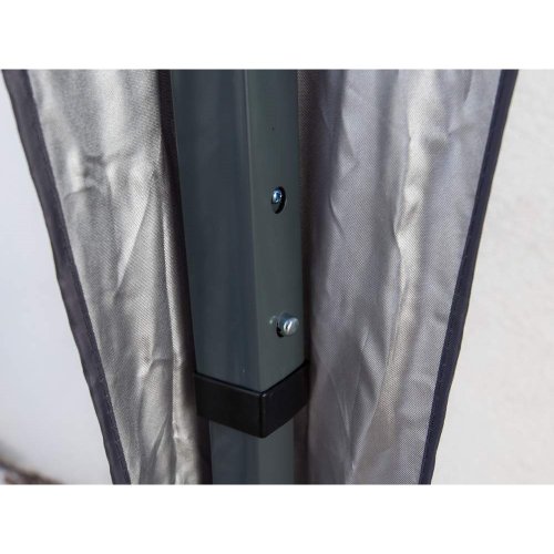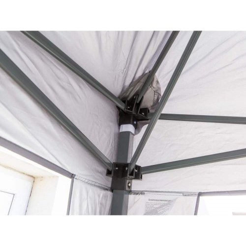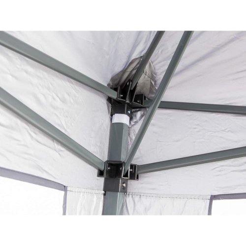 Skládací altán SULTAN o rozměru 3 x 3 m a výškou 2,5 m se stabilní nosnou konstrukcí nohy 30 x 30 / 25 x 25 mm a skládacím nůžkovým mechanismem žeber 10 x 18 mm. Střešní potah 210D Oxford je opatřen vnitřní stříbrnou vrstvou a dvojitým nástřikem pro zvýšení odolnosti proti povětrnostním vlivům.