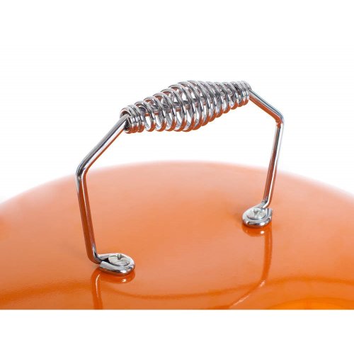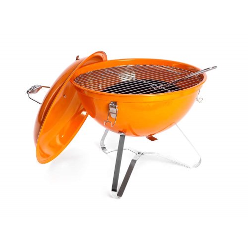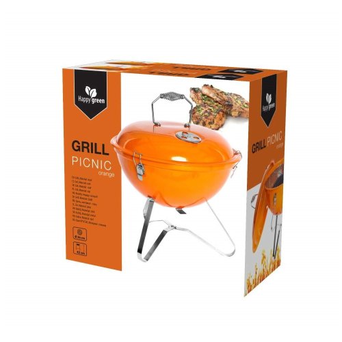 Gril PICNIC je kulatý gril s poklicí o průměru 36 cm a výškou 42 cm. Gril je vybaven roštem o průměru 34 cm s chromovou úpravou. Barva grilu: oranžová. Gril využijete zejména při kempování, na chatách a chalupách.