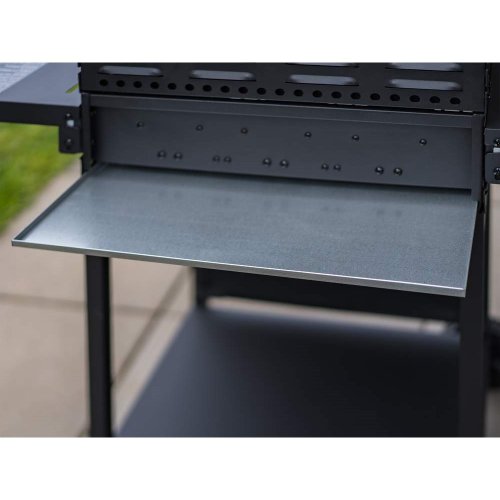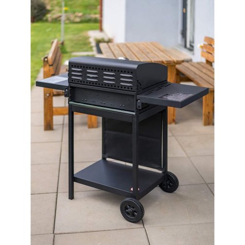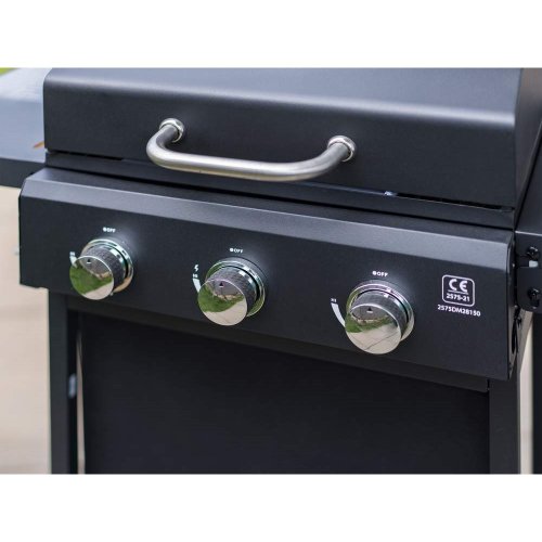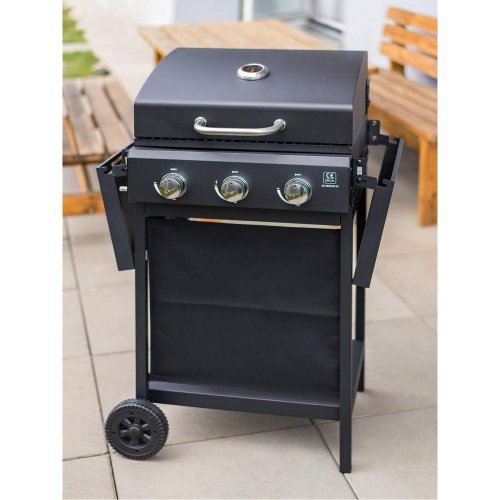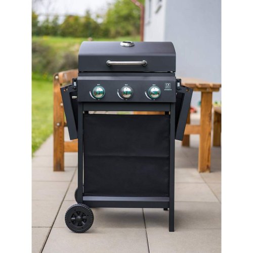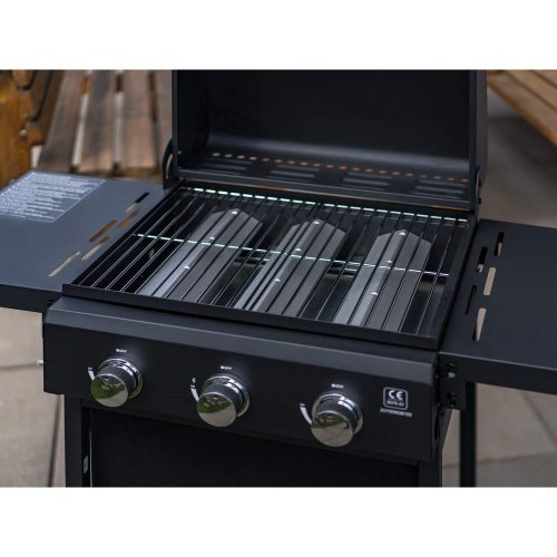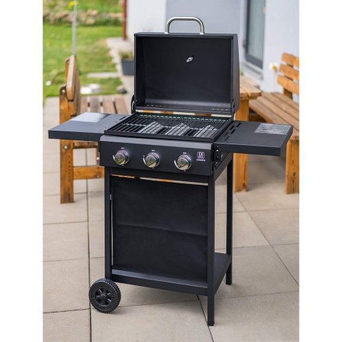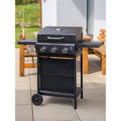 Velmi praktický a elegantní plynový gril HAMMOND se třemi hořáky pro snadnou přípravu grilovaných pokrmů. Kvalitní provedení s poklopem umožňuje uzavřít spodní část grilu a díky tomu nemůže teplo tak rychle uniknout ven. Podobně jako v pečící troubě se pokrm propeče rovnoměrně ze všech stran. Gril můžete použít na grilování i bez víka. Pomocí dvou plastových koleček dopravíte gril snadno na potřebné místo na vaší zahradě či terase. Komfort vám dopřejí i dvě odkládací plochy, které jsou sklápěcí a spodní poličku. Gril má teploměr v poklopu. Gril se zapaluje pomocí elektronického zapalování. Má 3 pochromované ABS knoby. Rozměry grilu: 106 × 53 × 101,6 cm. Výška pracovní plochy je 84 cm. Plocha roštu: 48,5 × 37,5 cm - 1800 cm2. Balení neobsahuje: regulátor + PVC hadici. Je třeba dokoupit ve specializovaných prodejnách.