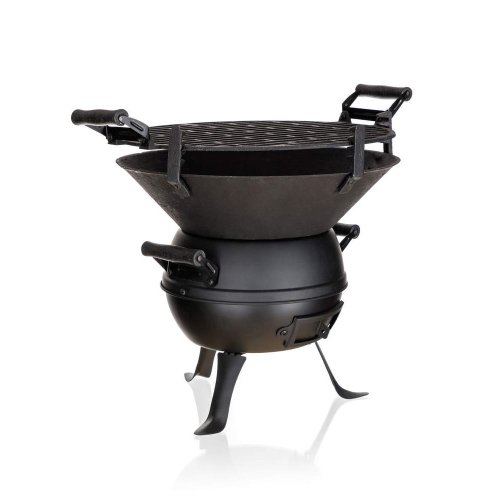 Gril SOUDEK - stabilní litinový gril o průměru 36 cm a výšce roštu 36 cm, materiál ohniště a nohou litina, tělo grilu ocel ošetřená černou práškovou barvou.