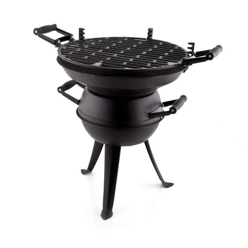 Gril SOUDEK - stabilní litinový gril o průměru 36 cm a výšce roštu 36 cm, materiál ohniště a nohou litina, tělo grilu ocel ošetřená černou práškovou barvou. Tento kompaktní gril je vhodný k použití na malé zahrady, terasy a balkony.