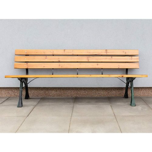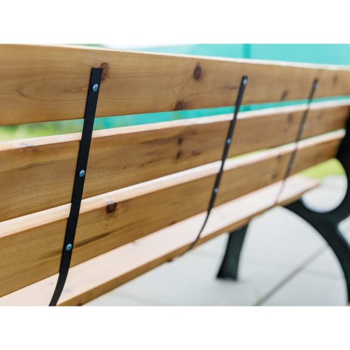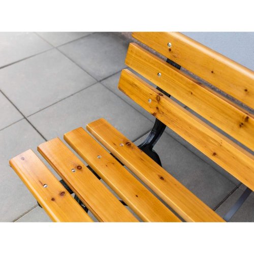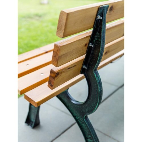 Zahradní lavička Gallen je velice masivní konstrukce vyrobena z litinových nohou a masivních dřevěných latí v přírodní barvě. Lavička je osazena 7 masivními prkny o velikosti 180 x 8 x 2,3 cm. Lavička je balena ve 2 kartonech (odděleně litinové části + dřevěné latě).