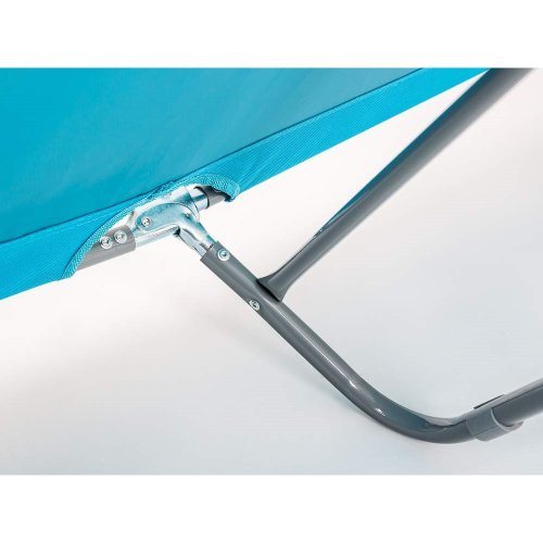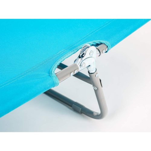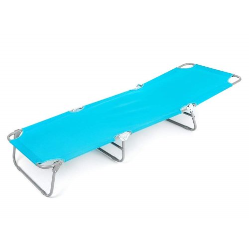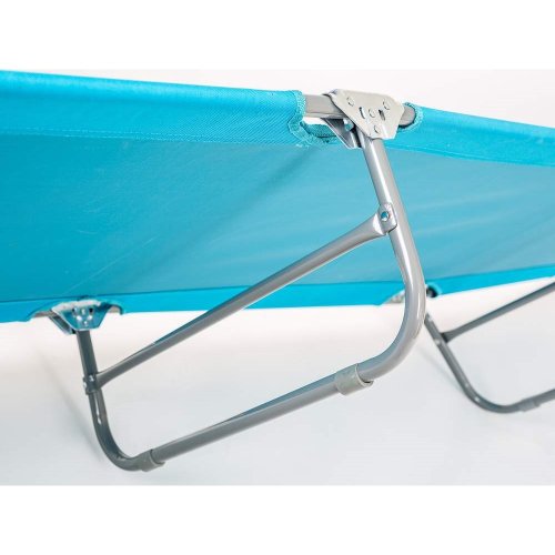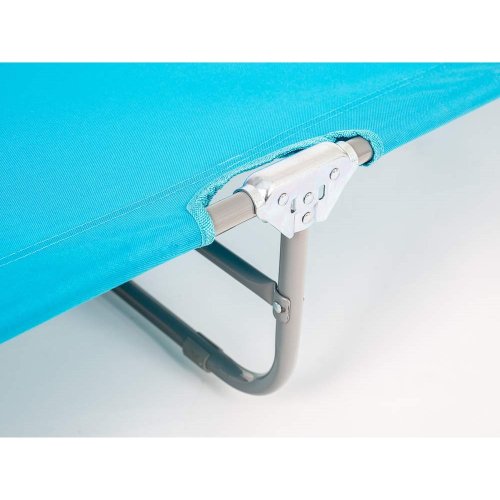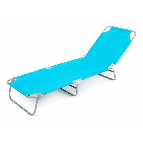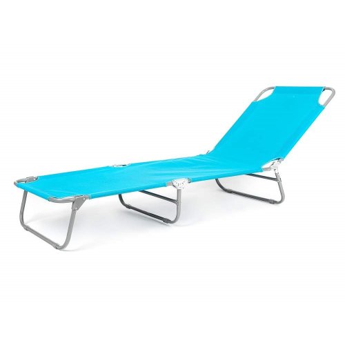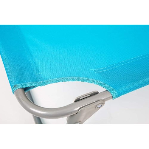 Plážové lehátko SUNBAY je vhodné pro relaxaci na zahradě, chatě nebo u bazénu. Lehátko má stříbrnou kovovou konstrukci, výplň 600D oxford a výškově nastavitelný sklon opěradla a podnožky. Rozměr 186 x 53 x 24 cm, nosnost 100 kg, barva světle modrá.