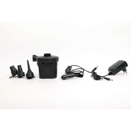 2cestná vzduchová pumpa vhodná pro nafukování a vyfukování lehátek, postelí, bazénů či podobných položek. Kombinovaná možnost provozu na napájení z běžné sítě 220 V, nebo na cestách ze zásuvky auto zapalovače 12 V. Nasazením potřebného adaptéru na příslušný otvor pumpy můžeme buď nafukovat, nebo případně vysávat vzduch z produktu, pro jeho následné snažší složení.