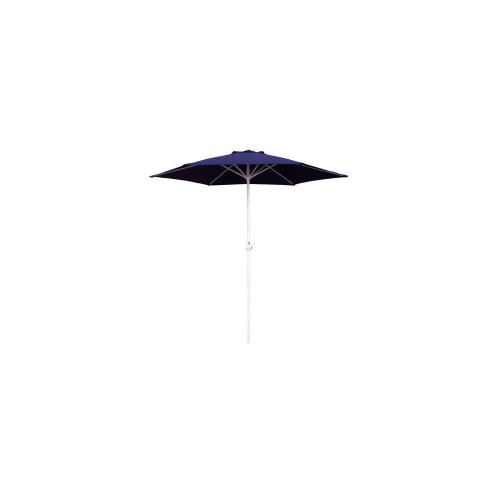 Slunečník plážový 230 cm s praktickou kličkou má kovovou konstrukci v bílé barvě, potahová látka - polyester 140 g. Slunečník je vysoký 217 cm, průměr spodní části kovové tyče je 3,4 cm Slunečník má 6 žeber 8 x 16 mm. Barva tmavě modrá.