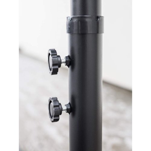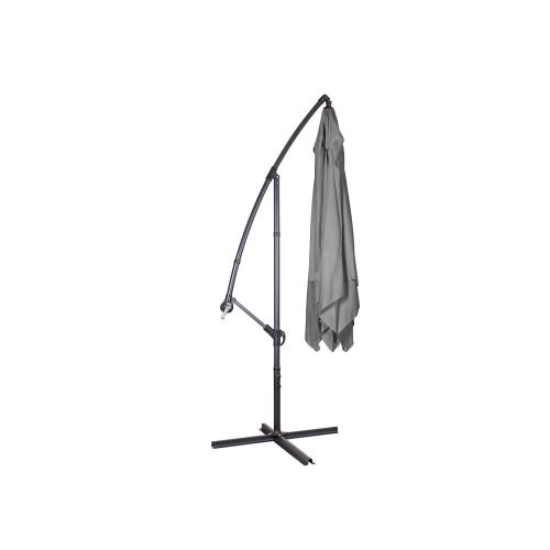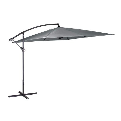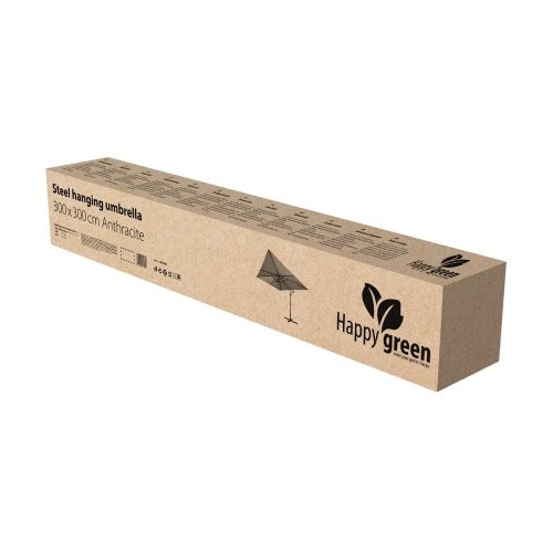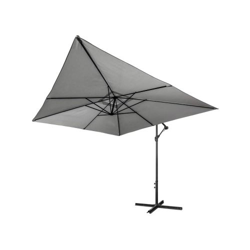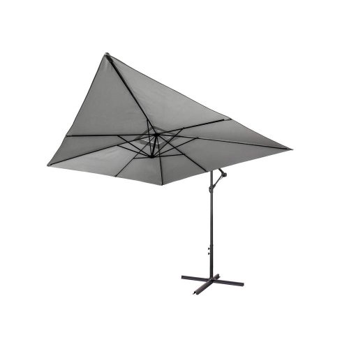 Závěsný slunečník NEVADA čtvercový 3 x 3 m má 8 ocelových žeber 12 x 18 mm, je vyrobený z polyesteru 160g / m2. Pevná ocelová tyč má průměr 48 mm. Stojan (součástí výrobku) je možno zatížit betonovými dlaždicemi pro zvýšení celkové stability. Otevírání slunečníku se provádí kličkou. Barva šedá / ocelová tyč černá.