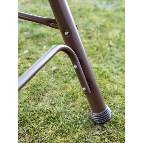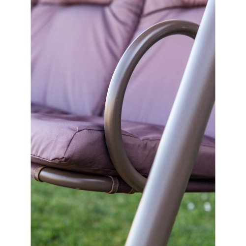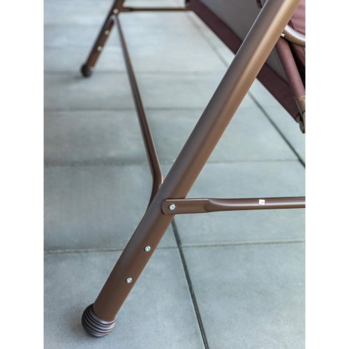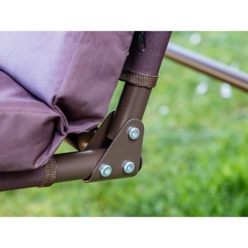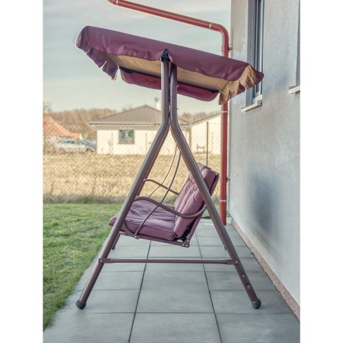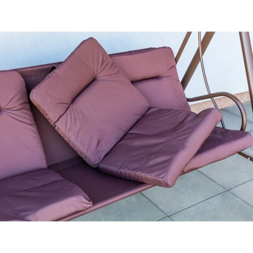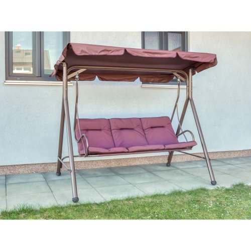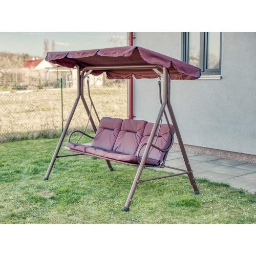 Pohodlná zahradní houpačka TARA v hnědé barvě s pevnou kovovou konstrukcí ošetřená lesklým práškovým lakováním. Sedák je rozdělen do tří samostatných částí, které jsou zajištěny proti posunu. Na houpačce se pohodleně usadí 3 lidé. Sklon stříšky lze jednoduše nastavit a aretovat. Rozměry: 181 x 127 x 157 cm, sedák 144 x 45 x 7 cm, opěradlo 144 x 45 x 7 cm, střecha 1920 x 100 cm, nosnost 240 kg.