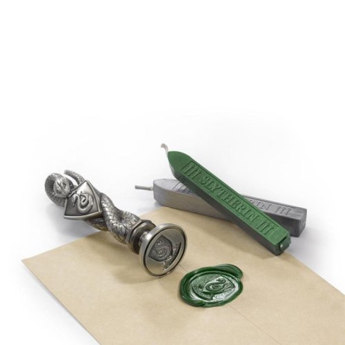 Zmijozelský pečetící set. SOučástí balení je kovové pečetítko s erbem Zmijozelu a 2 barevné vosky.