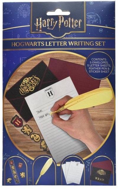 Sada obsahuje 5 obálek, 5 dopisních papírů, pero ve tvaru brku a samolepky.
