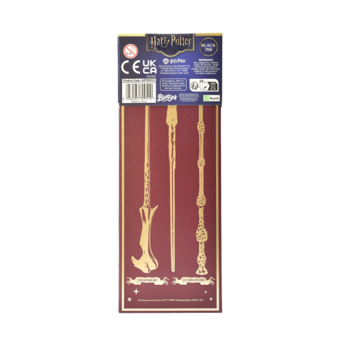 Set propisek ve tvaru kouzelnických hůlek série Harry Potter. Obsahuje vyměnitelnou náplň s černým inkoustem.