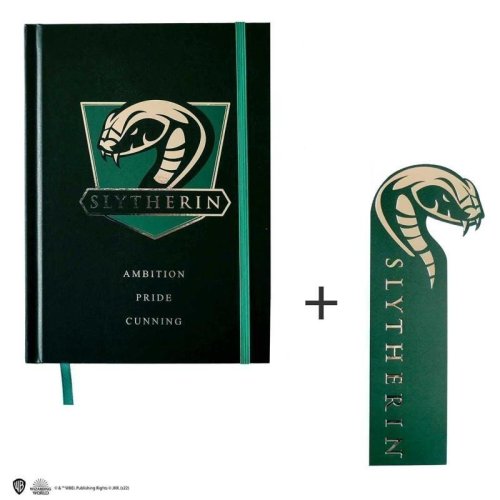 Zápisník + záložka s motivem kolejí v oficiální licenci Hary Potter • Velikost A5 • Pevná šitá vazba • linkovaný • obsahuje záložku • s gumičkou