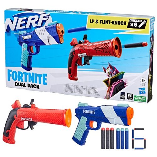 Tento úžasný balíček Nerf Fortnite Dual Pack obsahuje 2 pušky Nerf Fortnite a 6 pěnových šipek Nerf Elite! S tímto speciálním multipackem jste připraveni vyrazit do terénu. Obě pušky na šipky jsou inspirovány vybavením používaným ve Fortnite a jsou v této sadě dostupné poprvé. Puška Flint-Knock je vybavena aktivací úderníku a vystřeluje 1 šipku. Nízkotlaká puška má tahový náboj a vystřeluje 1 šipku. Obě pušky Nerf se snadno používají a jsou připraveny k použití ve 3jednoduchých krocích. Nabijte zepředu 1 šipku, naplňte a stiskněte spoušť. Obsahuje 6 oficiálních elitních pěnových šipek Nerf, které vám poskytnou další šipky pro opětovné nabití.