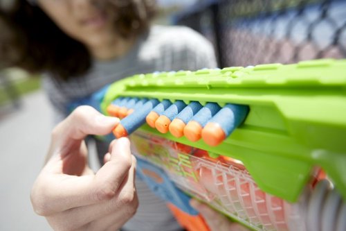 Zdvojnásobte radost ze střílení šipek s blástrem Nerf Elite 2.0 Double Punch! Tento motorizovaný blástr má totiž 2 hlavně a 2 zásobníky! Blástr Double Punch se může chlubit dvěma rychle se střídajícími hlavněmi, které se při střelbě pohybují dopředu a zpět. Součástí jsou 2 zásobníky po 10 šipkách, takže to můžete rozjet se 20 šipkami v řadě. V balení naleznete hned 50 pěnových šipek Nerf Elite 2.0, takže máte dostatečné množství, abyste naplnili oba zásobníky po10 kusech a další šipky připravili do úložného prostoru a měli je tak po ruce pro další nabíjení. Šipky jsou dodávány ve 2 různých barevných provedeních. Užijte si akce na plné obrátky díky motorizované střelbě. Stačí držet stlačené akcelerační tlačítko apři stisknutí spouště pak spustíte rychlou palbu. Děti budou nadšené – šipky rychle létají, hlaveň se pohybuje dopředu a zpět a hry venku díky tomu získají šťávu. Je to skvělý dárek pro děti a perfektní hračka, při které budou děti v pohybu. Při hraní se doporučují brýle (nejsou součástí balení). Je zapotřebí 4x 1,5 V alkalických AA baterií (nejsou součástí balení).