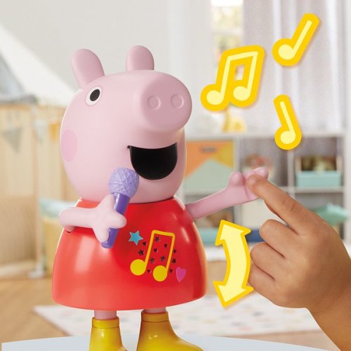Mluvící a zpívající prasátko Peppa Pig. Díky více než 50 frázím, písním a zvukovým efektům bude hra s mluvícím a zpívajícím prasátkem Peppa tak zábavná. Tato super roztomilá hračka pro dívky a chlapce mluví, hraje a zpívá čtyři písničky; výměna režimů je stejně snadná jako pohyb jejího mikrofonu nahoru nebo dolů. Děti mohou pohybovat její paží, aby se její ústa pohybovala a slyšely ji mluvit nebo zpívat. Malé prasátko dokáže předstírat, že skáče do blátivých louží, aby předvedlo šplouchající zvukové efekty. Prasátko mluví a zpívá pouze v angličtině. Popis a varování jsou v českém jazyce. Funguje na baterie 2x AAA, které jsou součástí výrobku. Výška prasátka: 20 cm. Rozměry balení: 25,4 x 17,8 x 10,2 cm. Věk: 3+