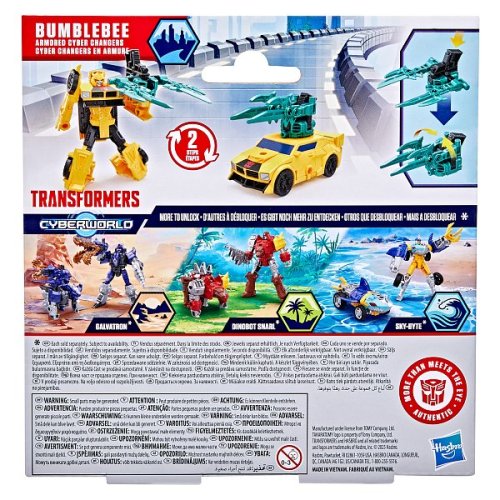 Transformers Cyberworld - Armored Cyber Changers vám přináší známé tváře a nové bojové strategie! Posilte se svými oblíbenými Autoboty a Decepticony, zatímco bojují o galaktickou nadvládu. Akční figurka Bumblebee se snadno promění z robota na alternativní mód auta ve 2 krocích. Přeměna ve 2 krocích je dostatečně jednoduchá, aby ji děti zvládly samy. V režimu robota je figurka vysoká přibližně 10 cm a je polohovatelná. Součástí figurky je blaster, který má dva úžasné režimy a lze jej připevnit k figurce v režimu robota i auta. Vyrobeno z kvalitního plastu. Rozměry balení: 18,1 x 17,7 x 4,9 cm. Věk: 6+