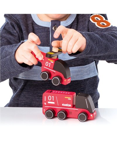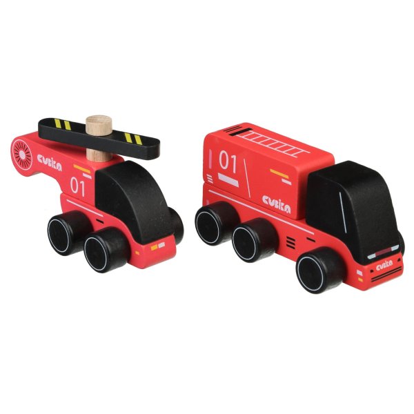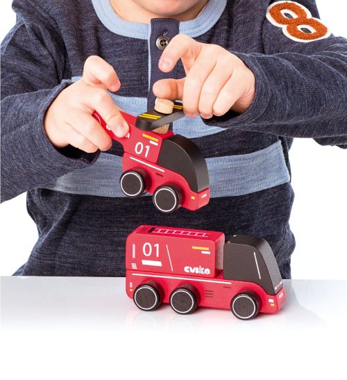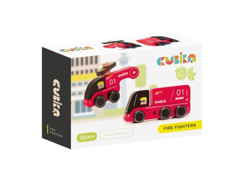 CUBIKA je nová značka dřevěných hraček vyrobených pouze z ekologicky pěstovaného dřeva s velmi precizním opracováním a líbivým designem. Hasiči jsou dvoudílná dřevěná sada obsahující jedno hasičské auto a jeden vrtulník. Sada je vhodná díky svým zaobleným hranám i pro malé děti. Délka autíčka je 12 cm, délka vrtulníku 10 cm. Sortiment hraček značky CUBIKA pomáhá dětem rozvíjet především senzomotorické schopnosti a dovednosti, logické myšlení, kreativitu, představivost a různé poznávací znalosti. Hračky jsou vyrobeny z nejkvalitnějšího javoru a buku a k barvení se používají též vysoce kvalitní barvy na vodní bázi, které jsou naprosto bezpečné pro děti a nemají žádný zápach. Všechny výrobky této značky mají německý certifikát TÜV a jsou vyrobeny dle evropské normy pro bezpečnost hraček EN 71. Nevhodné pro děti do 3 let. Vyrobeno v Evropě.