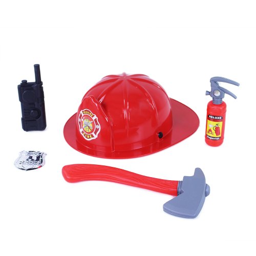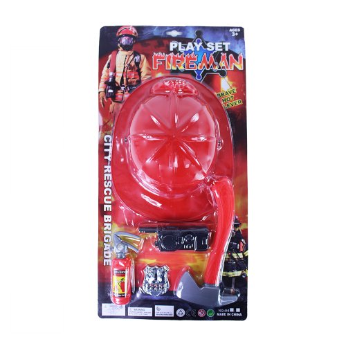 Vzhůru do záchranářské akce! Helma, hasičská sekera, hasicí přístroj, vysílačka a odznak, to vše se ti bude při hašení hodit! Všechny doplňky jsou vyrobeny z PVC.
