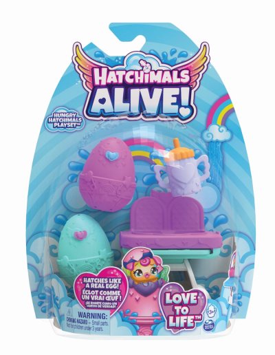 Zažijte nekonečnou zábavu při krmení s hrací sadou Hatchimals Alive Hungry Hatchimals! Díky vaší lásce a péči superroztomilé postavičky Hatchimals Alive magicky ožijí zcela novým způsobem. Z vajíčka pro samostatné líhnutí se po aktivaci vodou vylíhnou jako ze skutečných vajec! Tato hrací sada obsahuje dvě barevná vajíčka Hatchimals se dvěma postavičkami, lahvičku, dva dudlíky a židličku s motivem duhového mráčku. Když chcete zahájit proces líhnutí, vyndejte dudlíky z vajíček, naplňte láhev vodou a vsuňte ji do vajíček. Během několika sekund se vaši roztomilí noví kamarádi začnou líhnout a prorazí vajíčko! Umístěte hladové Hatchimals do židličky a využijte svou fantazii k dobrodružstvím při hře na krmení. Podložku židle lze vysunout a láhev s dudlíky doplní vaše vyprávění! Pro ještě víc her si pořiďte hrací sady Hatch N’ Stroll a Hatchi-Nursery (prodávají se samostatně)! Hračky Hatchimals pro děti se skvěle hodí pro všechny, kdo mají rádi sběratelské předměty, figurky, malé hračky, panenky a domečky pro panenky. Skvělý dárek k narozeninám a Vánocům i při jakékoliv jiné příležitosti pro děti od 3 let. Vytvořte si vlastní svět zvířátek Hatchimals s hrací sadou Hatchimals Alive Hungry Hatchimals!