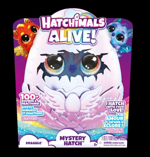 Blíží se něco magického. Je to Hatchimals Líhnoucí se interaktivní zvířátko, které potřebuje vaši lásku, aby se mohlo vylíhnout. Líhnutí Hatchimals je skutečně vzrušujícím zážitkem, doplněným o mlhu, světelné efekty a více než 100 zvuků a reakcí. Prostě je musíte mít! Kdo se vám vylíhne? Bude to překvapení! Uvnitř každého vajíčka Hatchimals Líhnoucí se interaktivní zvířátko se nachází 1 ze 2 postaviček. Podpořte svoji postavičku v líhnutí se na svět tím, že se s vajíčkem budete mazlit, ťukat na něj a zvedat a kolébat ho – vajíčko svítí a houpe se, a dokonce uslyšíte, jak vám váš Hatchimal zevnitř odpovídá. Až vajíčku dáte dostatek lásky, přijde čas na to svolat rodinu a přátele a připravit se na dokonalý zážitek z líhnutí. Objeví se magická mlha a vajíčko se rozzáří duhovými barvami – napětí roste. Po vylíhnutí vás bude váš nový kamarád inspirovat k hrám plným fantazie. Samou láskou si přiveďte k životu svou vlastní postavičku Hatchimal z řady Hatchimals Líhnoucí se interaktivní zvířátka. Obsahuje: 1 Hatchimals, 1 Hatchi-Wings, 1 stručný návod, 1 návod k použití, 4 baterie AA.