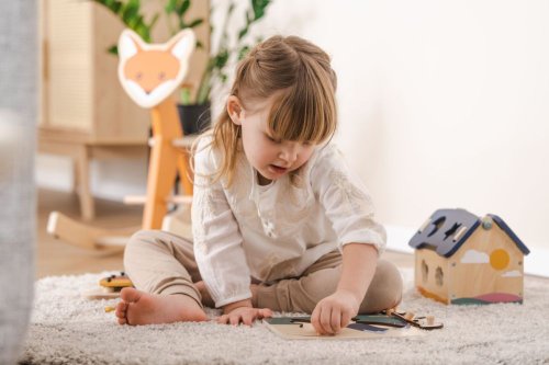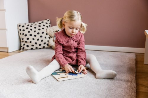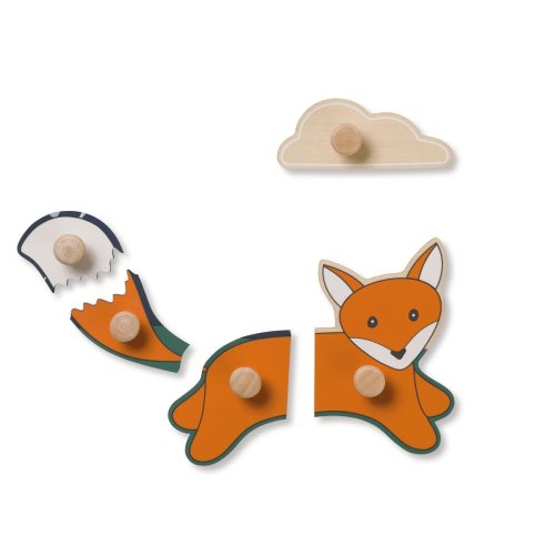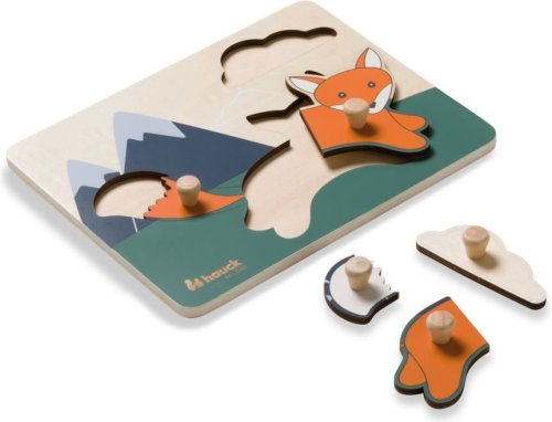 Dílky se od sebe tvarově liší, což znamená, že by s jejich přiřazením neměli mít problém ani ti nejmenší. Jednotlivé dílky mají úchytky. Rozvoj koordinace oko-ruka, logického myšlení, trpělivosti a prostorové představivosti. Dřevěná podložka s výřezy usnadňuje vkládání a dílky lépe drží na svých místech. Vhodné pro děti od 12 měsíců. Udržitelná hračka je vyrobená ze dřeva s certifikací FSC®.