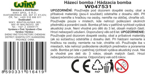 Házecí bomba. Akustický zvuk píšťalky. 2 varianty - modrá, oranžová.