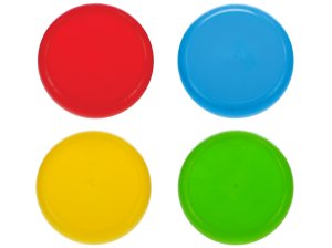 S házecím diskem zažijete na zahradě nebo v parku spoustu zábavy a pohybu. Tvar disku je aerodynamický, kulatý a uzpůsobený k házení a letu. Disk je o velikosti 23cm. Dostupné jsou 4 barvy - červená, žlutá, modrá, zelená. Vhodné pro děti od 10 měsíců.