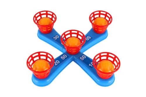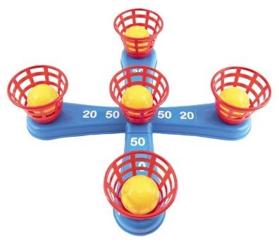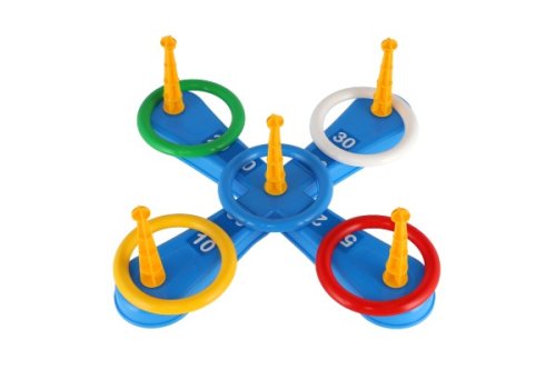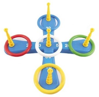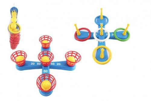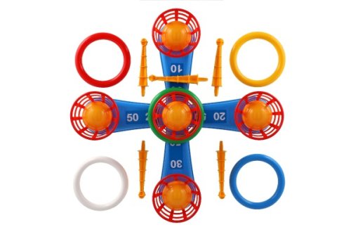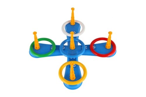 Zábavná hra, při které se hází kroužky na kříž. Balení obsahuje kříž s pěti hroty a pět barevných kroužků. Jednotlivé dílky jsou vyrobené z plastu. Tato hra se bude líbit zejména nejmenším dětem, které mohou sbírat body za každý hod, kdy se jim podaří umístit kroužek na hrot. Natrénují si také přesnost a trpělivost. Druhá hra funguje na stejný princip, ale hroty nahradily košíčky na míčky. Vhodné od 3 let.