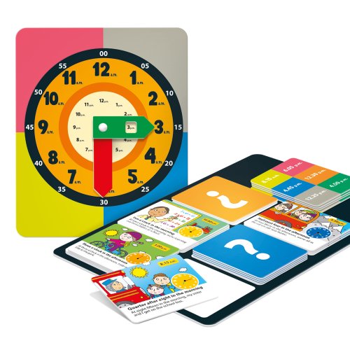 Obsah balení: 1 hodiny s ručičkami, 7 karet „můj den“, 54 karet bingo, 12 karet s hádáním času, 1 herní deska bingo, pravidla hry Doporučený věk: 5-10 let Balení: 28,5 x 25,5 x 6,1 cm