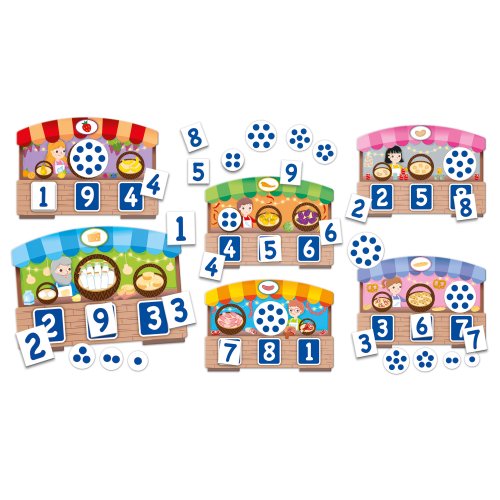 Obsah balení: 6 herních desek bingo s různými stánky a nabízenými druhy zboží, 18 obdélníkových dílků s čísly, 18 kulatých dílků se symboly množství, sáček z organické bavlny, průvodce výukou Doporučený věk: 3-6 let Balení: 18,6 x 25,5 x 6,9 cm