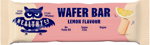 Křupavá oplatka s citrónovým nebo kakaovým krémem (77 %) bez přidaného cukru, bez palmového oleje, vegan. Tabulka nutričních hodnot: