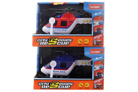 Policejní helikoptéra na baterie (3xAG13 - jsou součástí balení). Helikoptéra svítí a vydává zvuky vzletu, otáčení vrtule a houkání. Materiál plast. Baleno v otevřené krabici. Rozměry balení cca 22x13x11 cm. Věk 3+