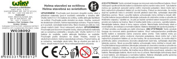 Stavební helma se svítilnou je ideálním doplňkem pro bezpečnou hru na staveništi. Funkce svítilny zlepšuje viditelnost při práci. Svítilna má polohovací sklon, její světlo se aktivuje zmáčknutím tlačítka. Baterie do svítilny 3xAG13 jsou součástí. Součástí je elastický popruh na suchý zip. Rozměry helmy: 24 x 19 x 13 cm. Rozměry balení: 29,5 x 19,9 x 6,5 cm. Věk: 3+