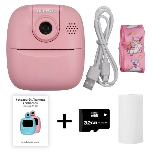 Helmer TP 02 kombinuje funkci digitálního fotoaparátu a vestavěné tiskárny. Umožuje fotit a okamžitě tisknout pořízené fotografie. Navíc dokáže i přehrát zvukové soubory MP3. Funkčnost tiskárny spočívá v technologii termotisku, která umožňuje rychlé a jednoduché vytváření snímků na roli papíru při velmi nízkých tiskových nákladech. Ovládání je velmi jednoduché díky 2" displeji s tlačítky na zadní straně. Kamera poskytuje různé filtry, rámečky a další grafické efekty, které děti mohou přidat ke svým fotografiím. Kromě toho nabízí i možnost zahrát si pět jednoduchých a zábavných her. Napájena je pomocí 1200 mAh baterie, která je jednoduše nabíjena pomocí USB-C portu. Je vyrobena z odolných materiálů, které vydrží i nešetrné zacházení.
