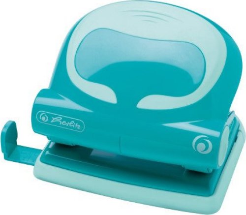 Ergonomicky tvarovaná děrovačka v tyrkysové barvě pro pohodlné a stylové děrování.