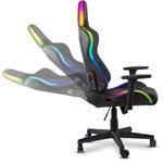 Úžasnou herní atmosféru vám pomůže navodit RGB podsvícení, které můžete ovládat pomocí přiloženého dálkového ovladače. Svítí 12 základními barvami a má hned několik režimů, pomocí kterých snadno nastavíte odstín, rychlost, interval, prodlevu i intenzitu svitu, díky čemuž si zútulníte své herní doupě k obrazu svému. Podsvícení je napájeno přes USB rozhraní, takže pro uvedení LED pásků do provozu je zapotřebí připojit křeslo k PC, k napájecímu adaptéru, powerbance či k jinému záložnímu zdroji (není součástí balení).
