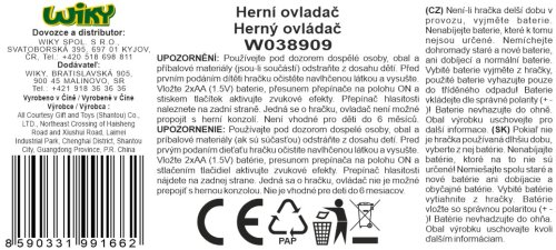 Herní ovladač - mluví česky, český obal. Rozměry 14,5x11 cm. Světelné a zvukové efekty. 2xAA baterie součástí. Přepínač ON/OFF na horní straně, přepínač hlasitosti na zadní straně ovladače.