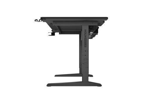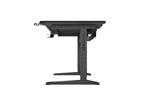 Nemusíte se obávat ani jeho výšky. Již ve fázi montáže si můžete vybrat z 5 úrovní, čímž určíte polohu stolové desky v rozmezí 70 až 90 cm. Můžete si ji tak snadno přizpůsobit své výšce, díky čemuž je stůl GENESIS Holm Modular plně ergonomický. Nastavitelná je také speciální police na kabely. Můžete ji prodloužit v rozmezí 50 až 95 cm, a přizpůsobit ji tak rozměrům celé stolové desky. Díky její hloubce se do ní snadno vejdou i velké přepěťové lišty.
