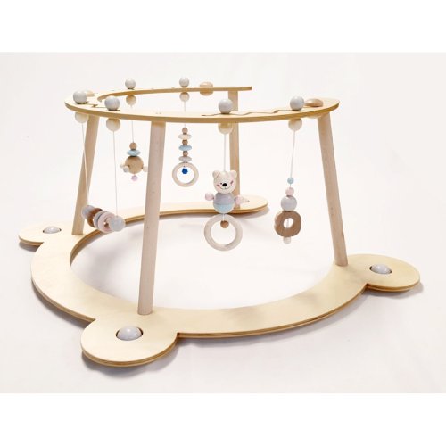 Stabilní obloukové chodítko se závěsnými medvídky, které vybízí děti k prvním krůčkům. Při plazení mohou medvídky chytat a hrát si s nimi, a pak se pomalu stavět na nožky. Po zvládnutém prvním krůčku s radostí vyrazí objevovat celý svět. Hlavní vlastnosti: vyrobeno ekologicky ze dřeva z neošetřených lesů 100% vyrobeno v Německu (kvalita Krušných hor) splňuje evropskou normu EN 71