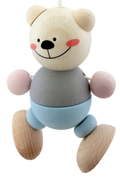 Barevný medvídek ze dřeva, který lze připevnit na kočárek, postel, nebo oblečení. Hlavní vlastnosti: velikost: cca 9 cmvyrobeno z původního, neošetřeného dřeva100% vyrobeno v Německu