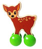 Dřevěná hračka jelena na kolečkách. Hlavní vlastnosti: veselá hračka pro rozvoj motoriky a koordinaci pohybů