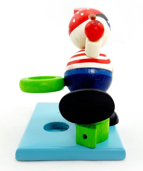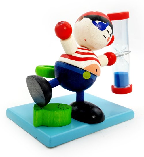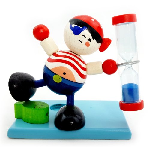 Díky těmto přesýpacím hodinám je čištění zubů ještě zábavnější. Délka přesýpání je 2 minuty. Za tělem piráta je úchyt - držák pro zubní kartáček. Hlavní vlastnosti: s držákem na zubní kartáček doba přesypávání 2 minvelikost 9 cm vyrobeno z původních neošetřených dřev