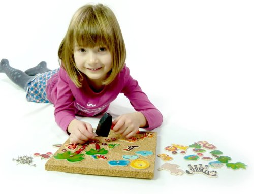 S touto zatloukací hrou se nebudete nudit. Použité barvy a tvary stimulují představivost. Tvořte rozmanité obrazy a cvičte jemnou motoriku Vašeho dítěte. Součástí sady jsou tvarové dílky z tištěné překližky, dřevěné kladívko, korková podložka a 50 ks hřebíčků s velkou půlkulatou hlavičkou. Hlavní vlastnosti: kompletní sada bezprostředně připravená ke hřevyrobeno eticky z ekologicky obhospodařovaných lesůpoužity ekologické a odolné barvy