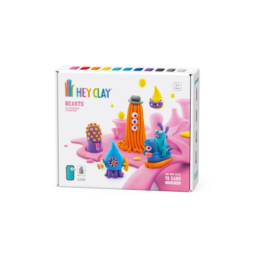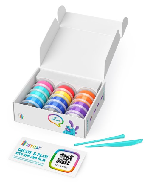 Z modelovací hmoty HEY CLAY si děti mohou vytvořit nepřeberné množství různých postaviček, zvířátek nebo oblíbených hrdinů. Po vymodelování je důležité nechat modely na vzduchu dostatečně zatvrdnout a tím okamžikem se mohou stát součástí dalších her a zábavy. Lze si tak jednoduše vytvořit vlastní figurky a postavičky, nebo schovat Hay Clay opět do kelímku pro další tvorbu. S mobilní aplikací Hey Clay (iOS, Android), kterou si zdarma stáhnete, a která nabídne dětem další možnosti rozvíjení fantazie, barev a kouzlení s vytvářením nových postaviček – kód v hodnotě 5USD pro otevření aplikace, najdete v každém balení. Sada Hey Clay obsahuje 2 plastové sochařské nástroje a 15 nádobek s měkkou, jemnou a voňavou modelínou a přístupový kód do aplikace pro zakoupenou řadu. Barvy nacházející se v balení Vám umožní vytvořit 6 postaviček. Věk 3+