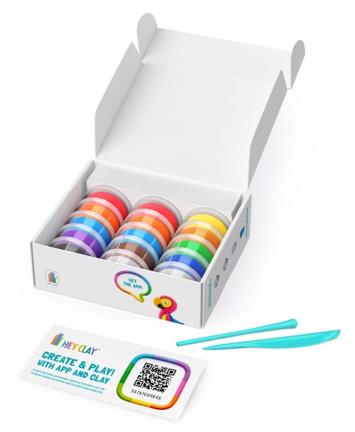 Z modelovací hmoty HEY CLAY si děti mohou vytvořit nepřeberné množství různých postaviček, zvířátek nebo oblíbených hrdinů. Po vymodelování je důležité nechat modely na vzduchu dostatečně zatvrdnout a tím okamžikem se mohou stát součástí dalších her a zábavy. Lze si tak jednoduše vytvořit vlastní figurky a postavičky, nebo schovat Hay Clay opět do kelímku pro další tvorbu. S mobilní aplikací Hey Clay (iOS, Android), kterou si zdarma stáhnete, a která nabídne dětem další možnosti rozvíjení fantazie, barev a kouzlení s vytvářením nových postaviček – kód v hodnotě 4,99USD pro otevření aplikace, najdete v každém balení Sada Hey Clay obsahuje 18 nádobek s měkkou, jemnou a voňavou modelínou a přístupový kód do aplikace pro zakoupenou řadu. Barvy nacházející se v balení Vám umožní vytvořit 6 postaviček. Věk 3+