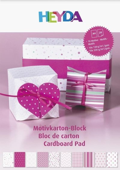 Blok barevných papírů, 10 motivů ve 2 gramážích, převážně oboustranně potištěny. Gramáže papírů 100 a 220 g/m2