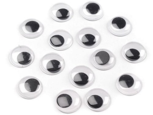 Ozdobné oči o průměru 10 mm, vhodné k výrobě postaviček nebo zvířátek. Balení obsahuje 100 ks očiček. Aplikace se provádí lepidlem, které se nanáší na zadní stranu výrobku.