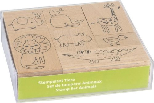 Sada 7 ks dřevěných razítek s motivem zvířátek. Díky hluboké gumové textuře lze razítka použít na papír, textil, polymery i jiné povrchy. Jsou vhodná pro všechny druhy inkoustů. Po skončení práce jednoduše opláchněte teplou vodou.